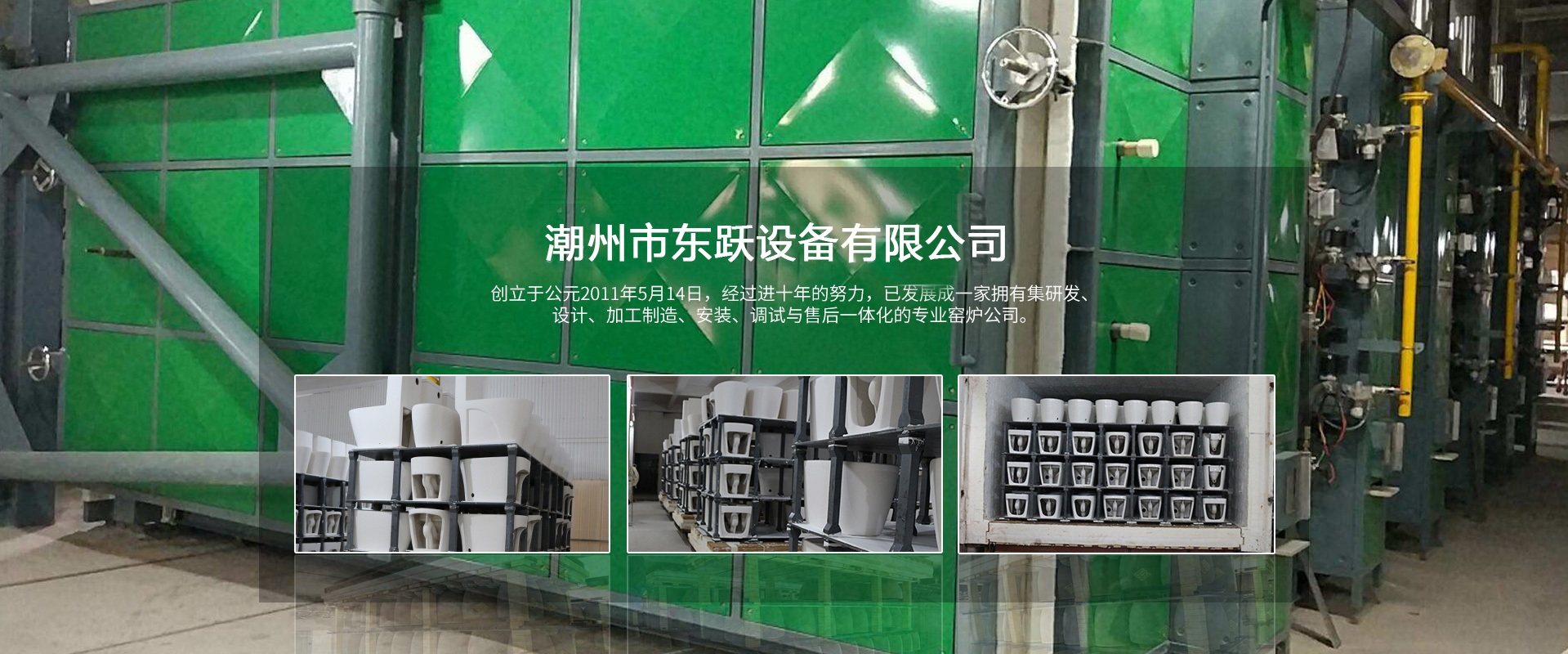 潮州市東躍設備有限公司,創立于公元2011年5月14日,經過進十年的努力,已發展成一家擁有集研發、設計、加工制造、安裝、調試與售后一體化的窯爐公司。設計理念:1.能耗低2.耐用(制造過程采用標準流水線作業,質檢嚴格)3.操作簡單 易學易用(可以零基礎上崗應用)4.重復率高達99.8%(燒成可靠性高 穩定性強)   現有設計人員10名,加工制造和安裝人員約100人,調試人員10人,售后服務人員10人,公司總人數約200人。公司本著以人為本的發展策略,不斷網絡人才,發展自動化窯爐技術。